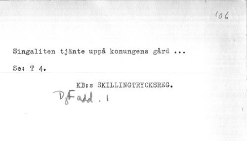 //// (6 C //// » //// Singaliten tjänte uppå konungens gård ??? Se: T 4. //// KBss SKILLINGTRYCKSREG. //// ^fo^Ji . I ////