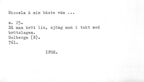 //// Sissela ä min bäste vän s ? 25* //// Då man bröt lin, sjöng man i takt med brötslagen. Solberga (b)» 761. //// IFGH. ////