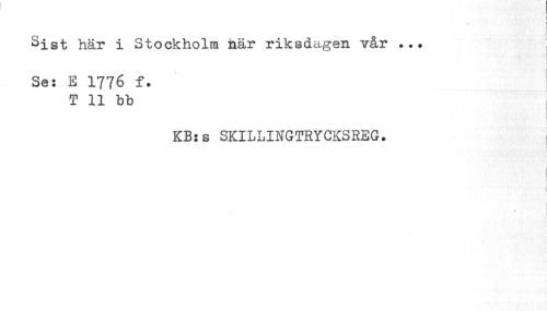 //// i //// Sist här i Stockholm här riksdagen vår ... , //// Se: E 1776 f. //// T 11 bb //// KB: s 5KILLINGTRYCKSREG. ////