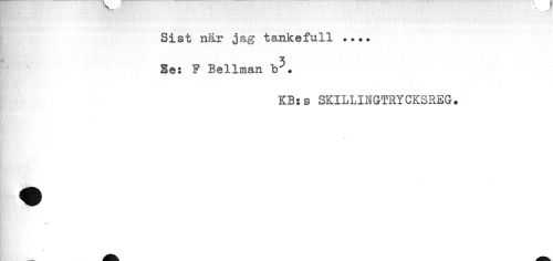 //// Sist när jag tankefull //// 3 //// Se: F Bellman b • //// KB: s SKILLIHGrTRYCKSREG• //// i ////