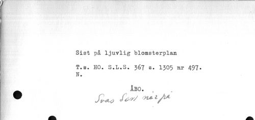 //// Sist på ljuvlig 'blomsterplan //// T.s. HO. S.L.S. 367 s. 1305 nr 497. N. //// ÅBO. , //// > ////
