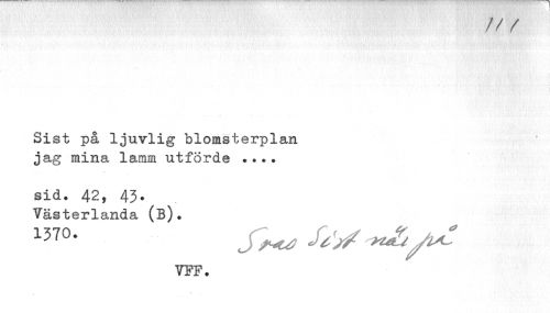 //// /// //// Sist på ljuvlig blomsterplan jag mina lamm utförde ... //// sid. 42, 43. //// Västerlanda (b). //// VFF. ////