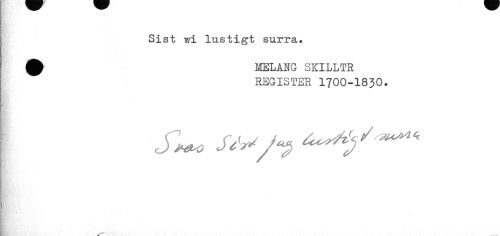//// Sist wi lustigt surra. //// MELANG SKILLTR REGISTER 1700-1830. ////