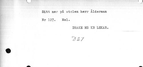 //// Sitt ner på stolen herr Ålderman Nr 127. Mel. //// DRAKE MS KB LEKAR. //// ^ - -• ¦ni rn irrtri^MMfcMjr i MVia^^^^jr ~. A» //// ^2,7 ////
