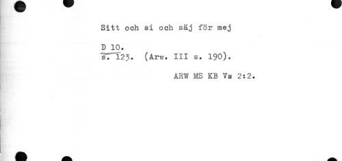 //// Sitt och si och säj för mej D 10. //// s. 123. (Arv/. III s. 190). //// ARW MS KB Vs 2:2. ////