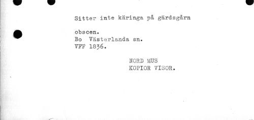 //// Sitter inte käringa på gärdsgårn //// ^fe obscen. //// ^^ Bo Västerlanda sn. //// VFF I836. //// NORD MUS KOPIOR VISOR. //// t //// t ////
