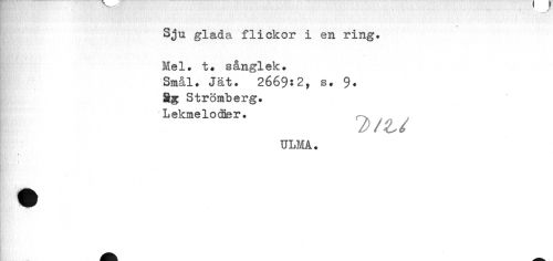 //// Sju glada flickor i en ring. //// Mel. t# sånglek. Smål. Jät. 2669:2, s. 9# äg Strömberg. Lekmelodäer. //// ulma. ////