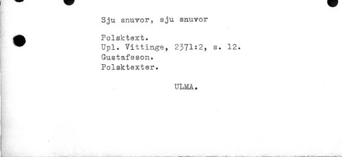 //// Sju snuvor, sju snuvor Polsktext. //// ^ Upl. Vittinge, 2371*2,"s. 12. //// Gustafsson. Polsktexter. //// ULMA? //// k ////