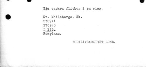 //// Sju vackra flickor i en ring. //// St. Mölleberga, Sk. 2709:1 2709:8 D 126». //// Ringdans. //// FOLKLIVSARKIVET LUND. ////