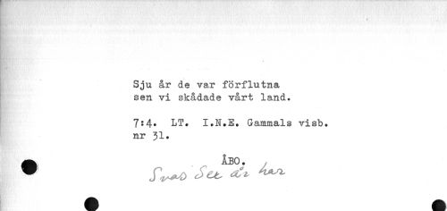 //// t //// 1 //// m //// ... //// Sju år de var förflutna //// sen vi skådade vårt land. //// ... //// 7:4. LT. I.N.E. Gammals visb. nr 31* //// ÅBO. //// 1 JU) Su, *** ////