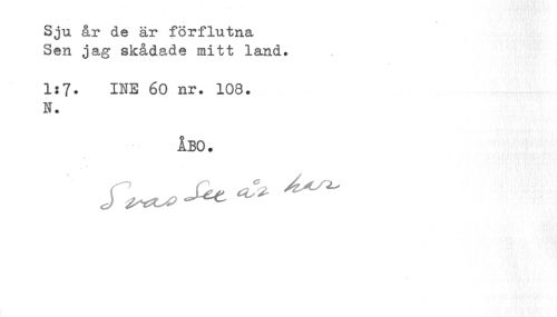 //// Sju år de är förflutna Sen jag skådade mitt land. //// Is?. INE 60 nr. 108. N. //// ÅBO. //// i ////