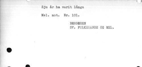 //// • ... //// Sju år ha varit långa Mel. not. Hr. 101. //// BERGGREN //// SV. FOLKESANGE OG MEL. //// « //// I ////