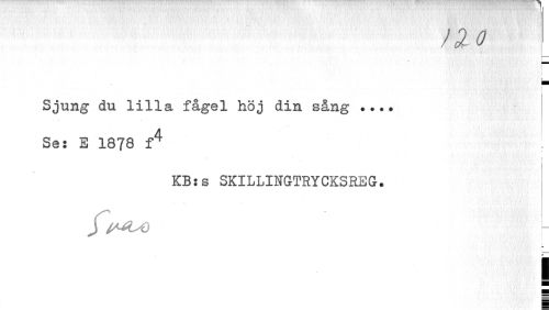 //// no //// ! //// Sjung du lilla fågel höj din sång ... Ses E 1878 f4 //// KB:s SKILLINGTRYCKSREG. //// J //// y * //// | //// i ////