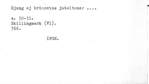 //// i //// •H i_ //// Sjung ej brännvins jubeltoner ... //// r //// I //// s. 3O-3I. //// Skillingmark (Vi). 766. //// / //// IFGH. //// ¦ ////