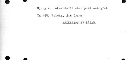 //// Sjung en Leksandslåt utan pust och gråt Da 465* Polska, fxr fragm. //// ANDERSSON SV LÅTAR. //// « //// m ¦ — ////