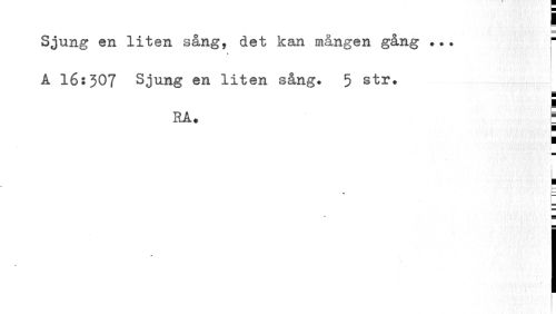 //// I //// Sjung en liten sång, det kan mången gång ... r //// v //// A 16:507 Sjung en liten sång. 5 str. //// s //// i k //// t //// p ////