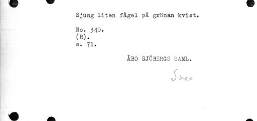 //// Sjung liten fågel på grönan kvist» //// No. 340. //// (a). //// s. 71. //// ÅBO SJÖBERGS SAISL. //// S IS-tfyV ////