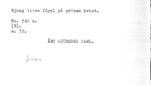 //// I //// Sjung liten fågel på grönan kvist. c //// No. 340 a. //// (h). s //// s. 72. //// 1= } //// ÅBO SJÖBERGS SAML. ! //// i //// S \ ////