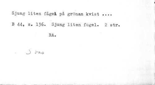 //// Sjung liten fågel, på grönan kvist ... //// B 44, s« 136. Sjung liten fogel. 2 str. //// RA. //// 1 //// J) I //// J ////