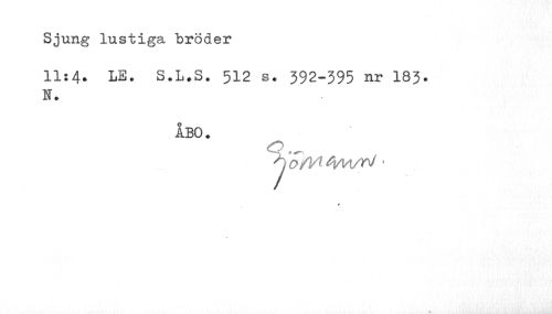 //// Sjung lustiga bröder //// 11:4. LE. S.L.S. 512 s. 392-395 nr 183. N. //// ÅBO. //// ko /V^^M/ri ¦ //// t //// m ////