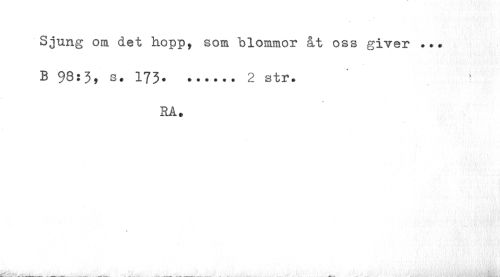 //// Sjung om det hopp, som "blommor åt oss giver ... //// B 98:3, s. 173...2 str. //// HÅ. ////