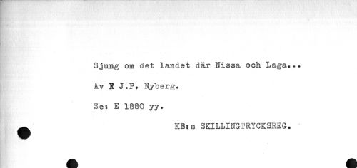 //// Sjung om det landet där Hissa och Laga... Av X J.P. Nyberg. Se: E 1880 yy. //// KB:s SKILLINGTRYCKSREG. ' ////