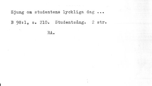 //// Sjung om studentens lyckliga dag ... //// B 98:1, s? 210. Studentsång. 2 str. //// » //// RA. //// ) ////