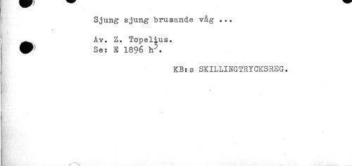 //// Sjung sjung brusande våg ... //// ^^ Av. Z. Topelius. //// &> Se: E 1896 h5. //// KB:s SKILLINGTRYCKSREG. //// t //// / \ ////