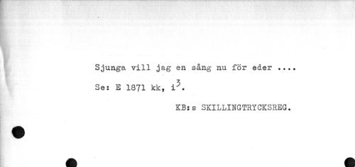 //// Sjunga vill jag en sång nu för eder ... Ses E 1871 kk, i5. //// KBss SKILLINGTRYCKSREG. ////