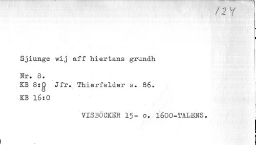 //// 12 Y //// ¦ //// I //// Sjiunge wij aff hiertans grundh Nr. 8. //// KB 8:0 Jfr. Thierfelder s. 86. ! //// KB 16:0 //// 'r 'fil i r //// VISBÖCKER 15- o. 1600-TALENS. [ //// ¦ ////
