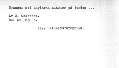 //// Sjunger med änglarna mänskor på jorden //// Av 0» Cederbom. Se: Zz 1838 c. //// KB:s SKILLIHGTRYCKSREG. ////