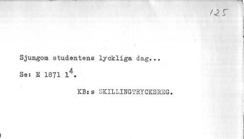 //// 12 r //// i //// # //// 4 //// Sjungora studentens lyckliga dag... Se: E 1871 l4. //// r //// KB:s SKILLINGTRYCKSREG. ////