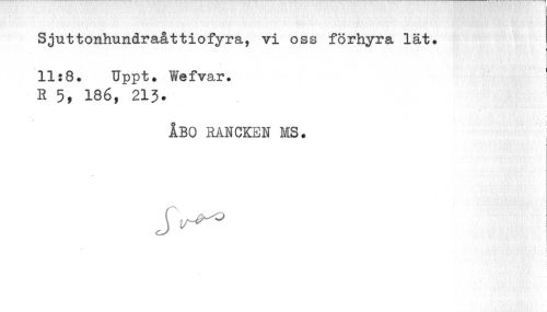 //// Sjuttonhundraåttiofyra, vi oss förhyra lät* //// % //// 11:8. Uppt. Wefvar. //// R 5, 186,*213. //// / > //// ÅBO RANCKEN MS. //// s ////