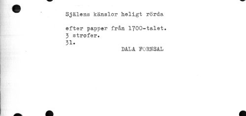 //// Själens känslor heligt rörda //// efter papper från 1700-talet. //// 3 strofer. //// 31. //// DALA PORUSAL ////