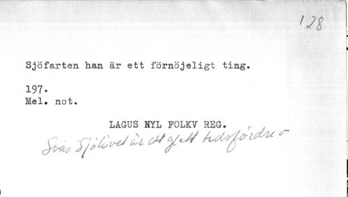 //// 'Jg //// ¦ //// i //// i //// Sjöfarten han är ett förnöjeligt ting. //// 197. //// Mel. not. //// LAGUS HYL POLKY REG. //// 1 //// 5 ////