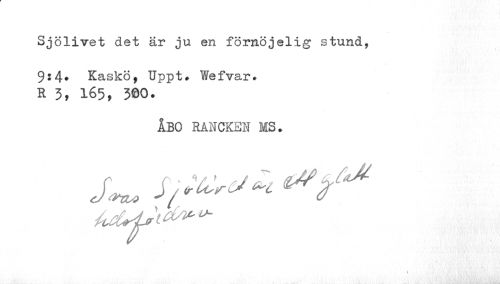 //// Sjölivet det är ju en förnöjelig stund, 9s4. Kaskö, Uppt» Wefvar. //// R 3, 165, 3©0. //// ÅBO RÅNCKEI MS. //// s^f* i** ////