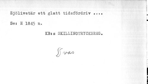 //// • • : ' ; I //// Sjölivetär ett glatt tidsfördriv ... j. //// Se: E 1845 n. f //// KB:s SKILLINGTRYCKSREG. //// i i //// ¦ //// i ¦ //// i //// i ////