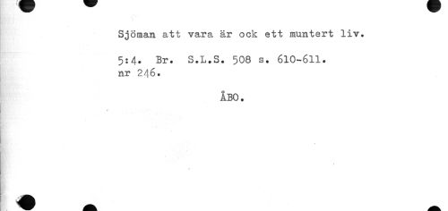 //// m //// Sjöman att vara är ock ett muntert liv. //// 5:4. Br. S.L.S. 508 s. 610-611. nr 246. //// ÅBO. //// ? ' « //// » //// * ////