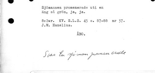 //// Sjömannen promenerade uti en äng så grön, ja, ja. //// 8:2+r. KV. S.L.S. 45 s. 87-88 nr 37. J.W. Hanelius. //// ? //// ÅBO. //// \ ////