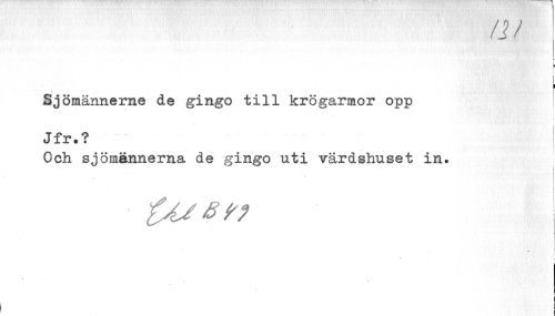 //// /i/ //// ¦ //// I //// t //// I //// Sjöraännerne de gingo till krögarmor opp //// • i //// Jfr.? I //// Och sjömännerna de gingo uti värdshuset in. //// % //// r //// = //// i i ////
