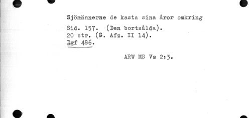 //// Sjöraännerne de kasta sina åror omkring //// Sid. 157. (Den bortsålda). 20 str. (S. Af z. II 14). //// Dgf 486. //// ARW MS Vs 2:3. //// t ////