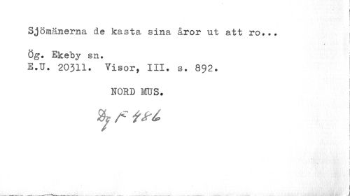 //// Sjömänerna de kasta sina åror ut att ro*** //// I //// •i //// Ög. Ekeby sn. //// E.U. 20J11. Visor, III. s. 892. //// HORD MUS. ! //// ' //// 1 iå //// i //// & A fft //// { f ////