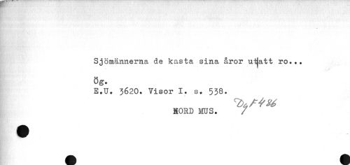 //// Sjömännerna de kasta sina åror utfått ro... ög. //// E.U. 3620. Visor I. s. 538. //// HORD MUS. / ////