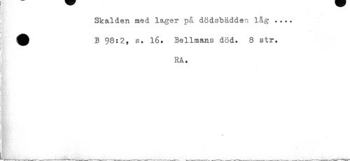 //// Skalden med lager på dödsbädden låg ... B 98:2, s. 16. Bellmans död. 8 str. //// RA. ////