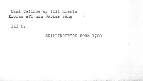 //// Skal Celinde ey till hierta Kröras aff min Suckar sång //// III S. //// SKILLINGTRYCK FÖRE 1700 //// « ////