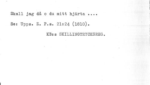 //// Skall jag dä o du mitt hjärta ... //// » //// Se: Upps. Z. P.s. 21:24 (1810). //// KB:s SKILLINGTRYCKSREG. //// I //// I ////