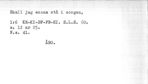 //// I //// Skall jag ensam stå i sorgen, //// 1:6 KR-KI-DF-FB-HI. S.L.S. 60. s. 12 nr 25® //// N.s. 41. //// ÅBO. //// i //// i //// i ////