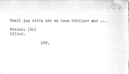 //// Skall jag sitta här nu inom ödsliger mur //// Svedala (Sk) 6172:6. //// LUF. //// t j //// I ¦ //// • ¦ //// i //// i ¦ ////