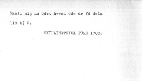 //// Skall mig nu ödet hwvad öde är få dela 118 b) U. //// SKILLINGTRYCK FÖEE 1700. //// i ////