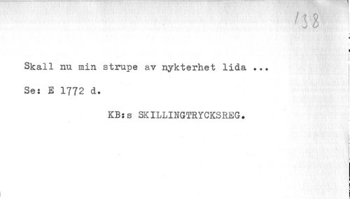 //// 158 //// ¦ //// i //// i //// i i i i //// Skall nu min strupe av nykterhet lida ... j //// Se: E 1772 d. //// KB: s SKILLINGTRYCKSREG. //// I //// j //// H //// 1 t i I- F //// ¦ //// i ////
